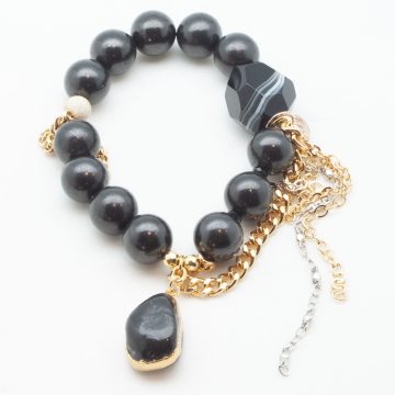As you head out into the world – into travel, work, crowds – you must shield and protect your energy and your body! Shungite, hypersthene & black tourmaline are the most powerful shielding stones we can wear and they will fiercely protect your wellbeing! From this protected place you will be grounded, spacious and clear within, harmonious throughout. 7 inch stretch bracelets.