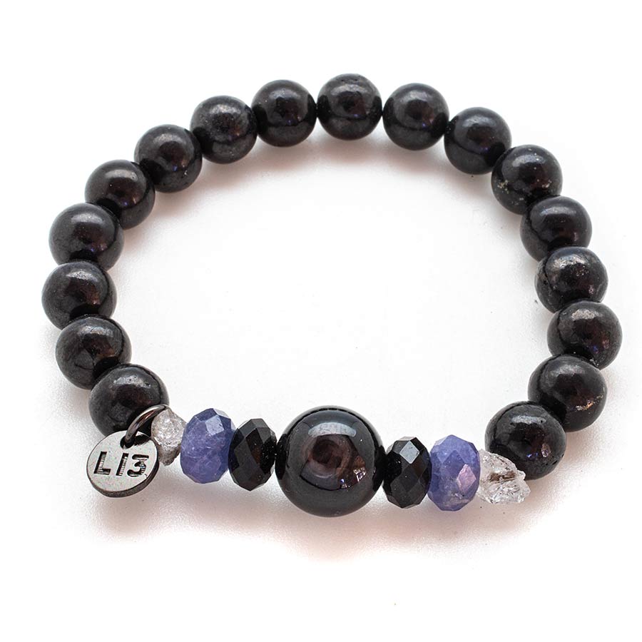 A combination of the most expansive and protective crystals – hypersthene, shungite, tourmaline, tanzanite and herkimer diamonds.