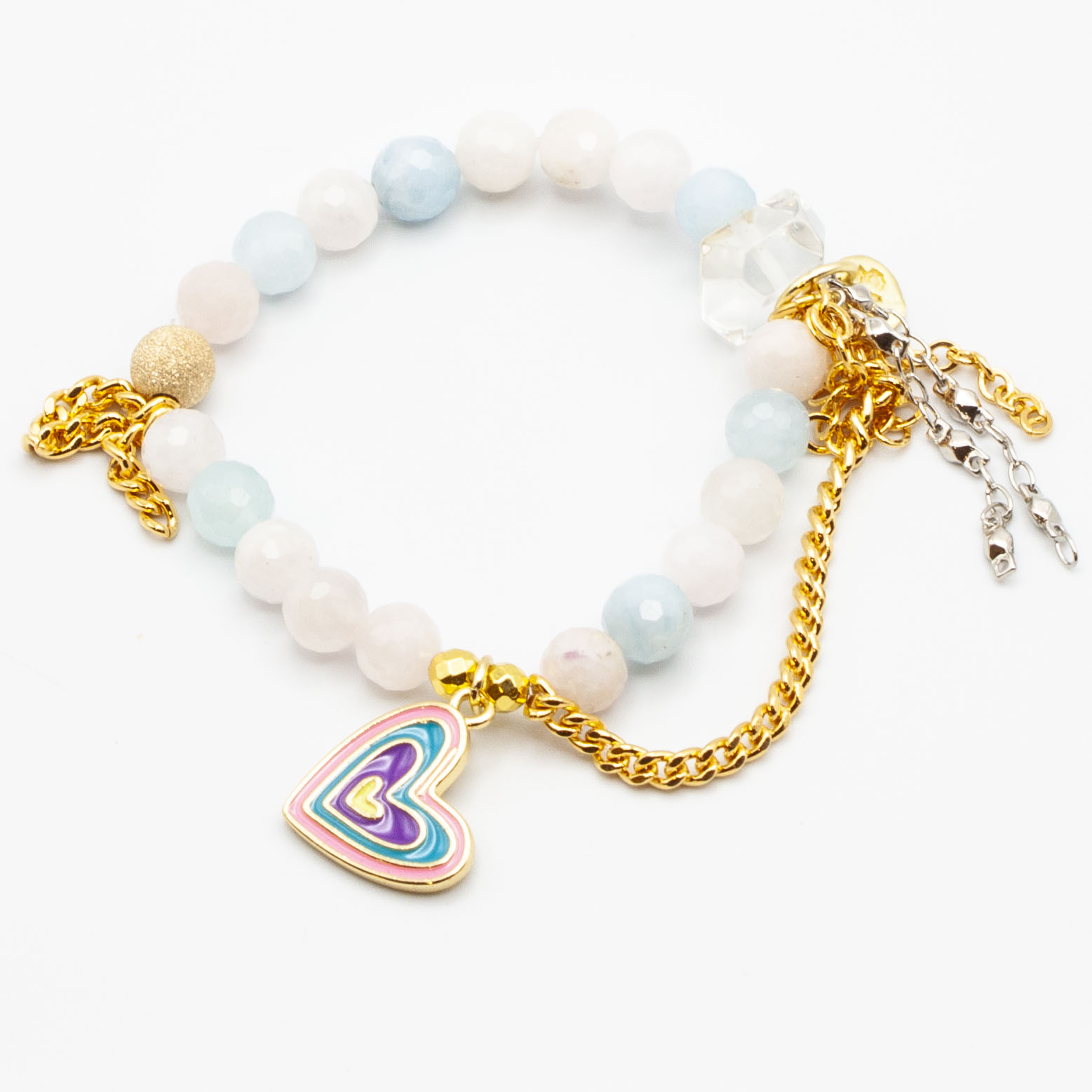 Girl’s Rose Quartz, Aquamarine & Moonstone with a Heart