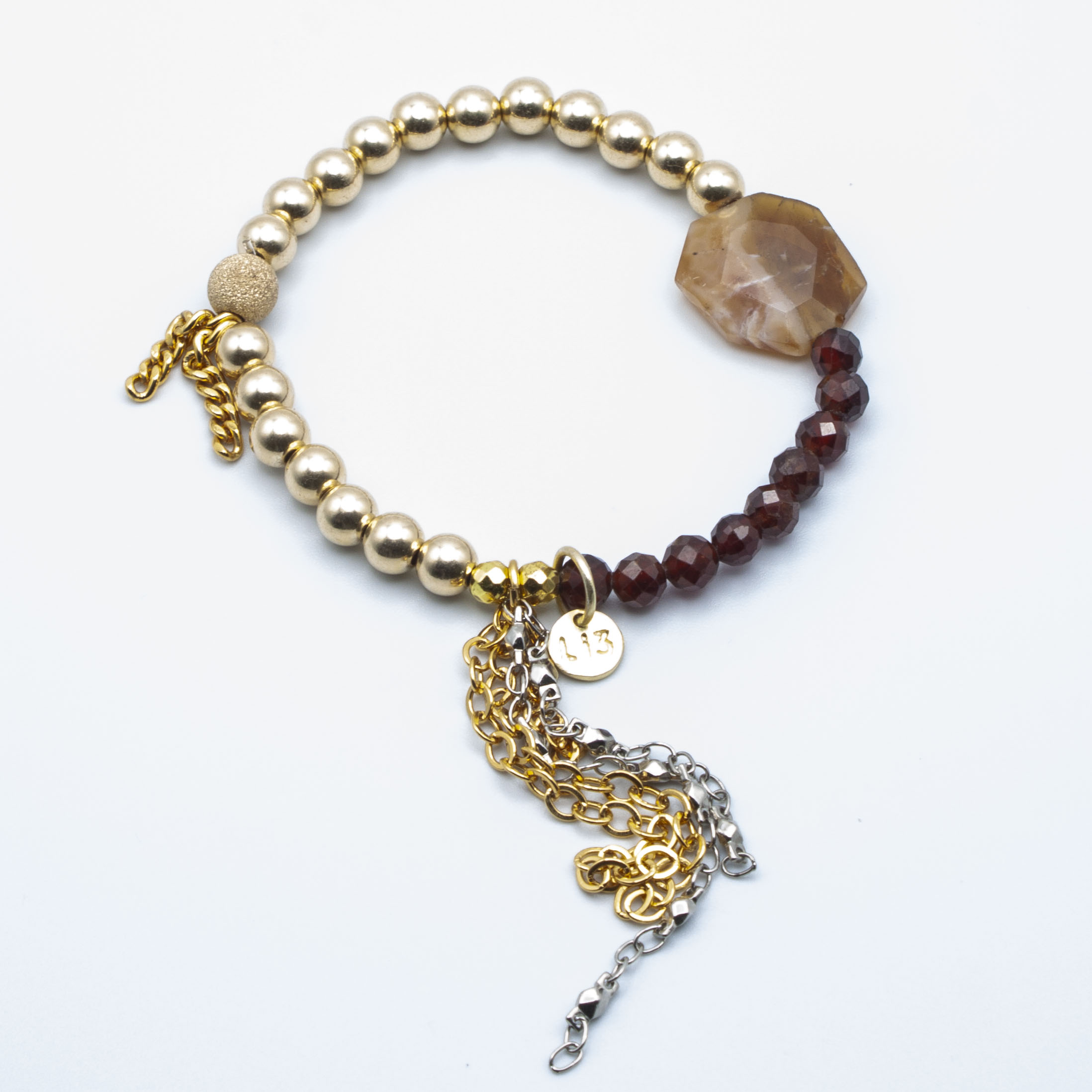 Created & Blessed with specific intention to cleanse and clear the sacral chakra. May your creativity flow and your being be divinely energized. 18kt gold 7 inch stretch bracelet.
