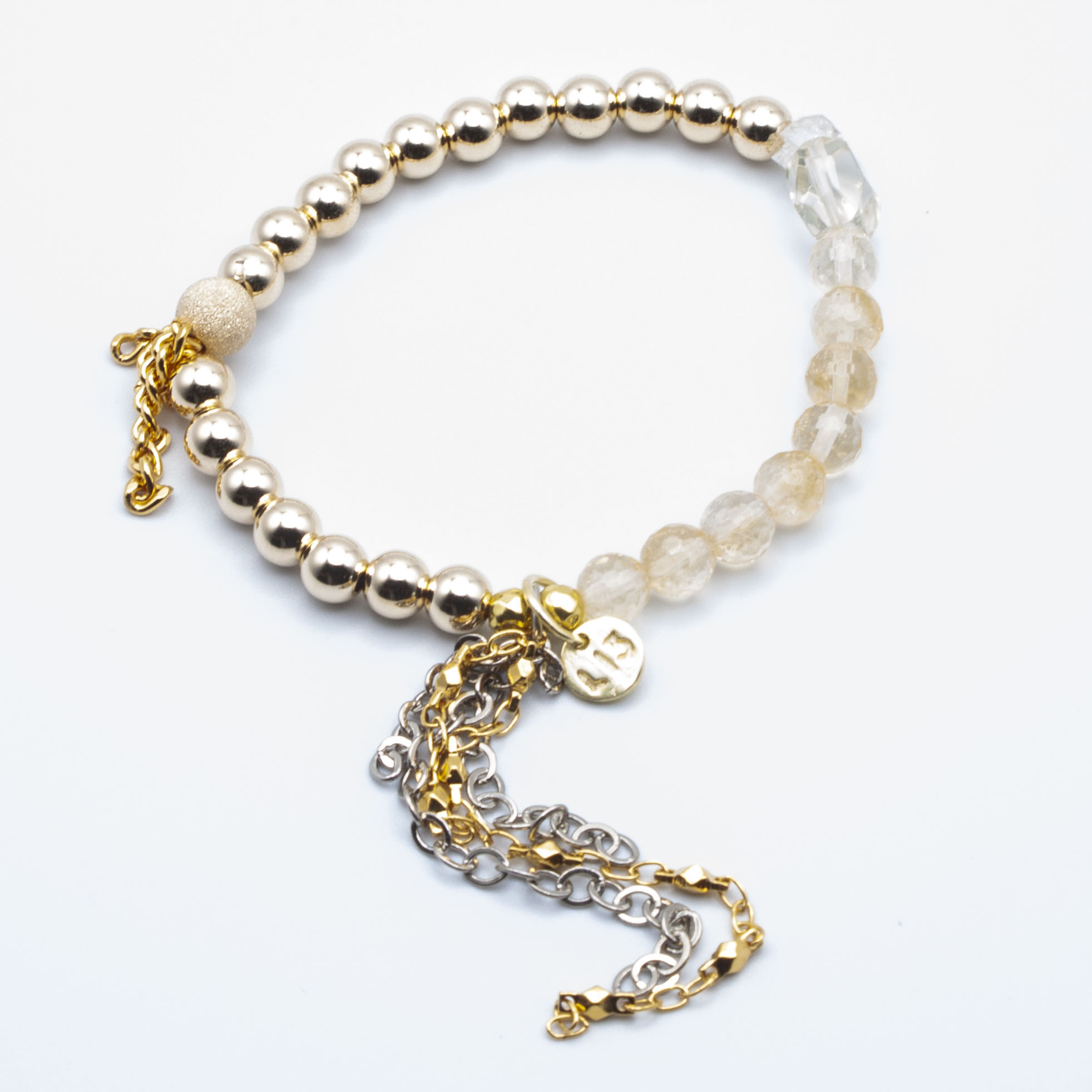 Created & Blessed to cleanse and clear your powerhouse chakra! May you be divinely blessed in lavish abundance, your will and your power ignited! 18kt gold 7 inch stretch bracelet.
