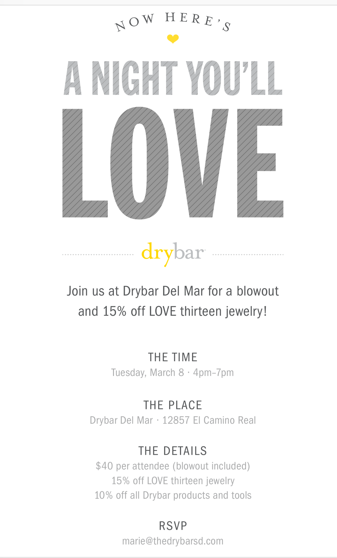March 8, 2016 @ 4:00 pm - 7:00 pm Trunk Show – Drybar Del Mar Drybar Del Mar 12857 El Camino Real, San Diego, CA, United States